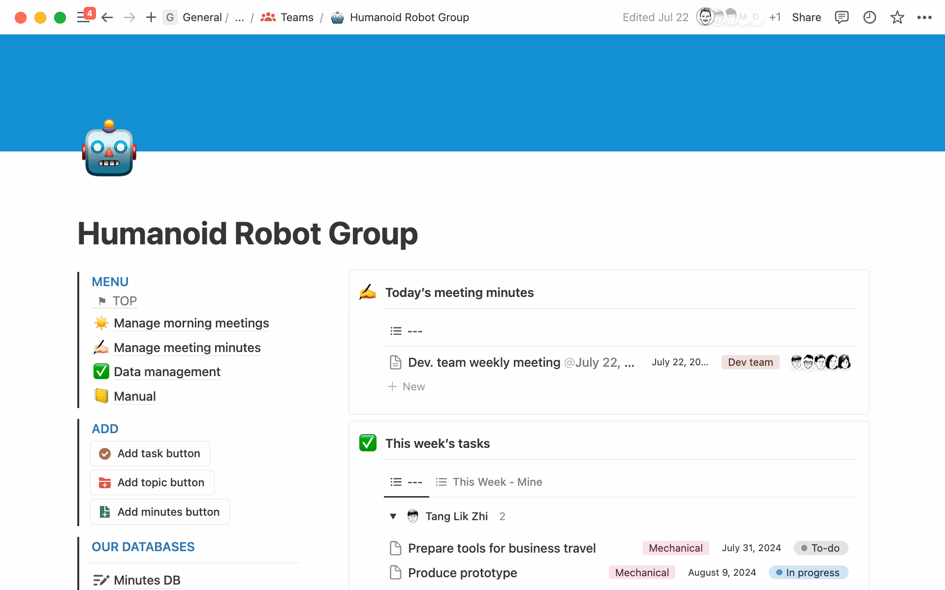 Die Gruppe, die Forschung und Entwicklung im Bereich humanoider Roboter betreibt, hatte Schwierigkeiten, Meeting-Protokolle und Hintergrundinformationen effizient zu nutzen, da diese an verschiedenen Orten gespeichert waren.